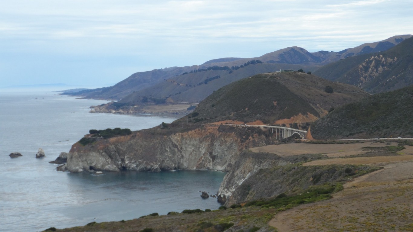 It rained fairly heavily last night, which was a bit of a surprise, so a wet tent to put away in the morning and the area was soggy, so I opted for a cooked breakfast at the lodge, very nice. I'd forgotten about the steep long hill immediately after leaving the campground at Big Sur, but was soon reminded just how long it was, after every curve I expected the top, but it took many more of those false summits before I could tear down the well deserved downhill portion. Today was one of the hilliest so far as the highway rolls up and down at edge of ocean for many miles. But the scenery! Yesterday's was fabulous whereas today's was phenomenal!