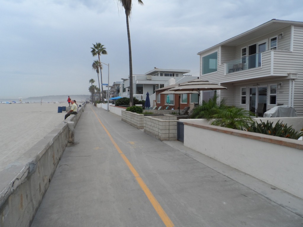 Riding on from La Jolla the bike route follows the coast into the city via Mission Beach where there were a lot of people holidaying in that area. Mission Beach is a beach Peninsula about two miles long. The bike path is next to the sand on one side and next to hundreds of vacation rental homes on the other.