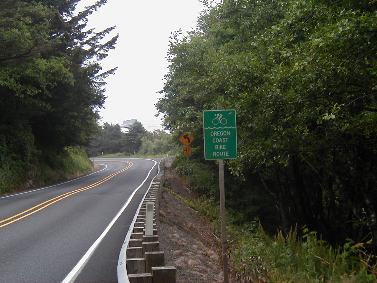 Other than the beautiful scenery, an uneventful day - second breaky in Pacific City - what a whopper of a breakfast - Basil didn't know that I could eat that much. I did stop in Lincoln City expecting to find a bike shop or two where I could buy a replacement mirror - but nada, zip, nothing! I couldn't believe that a town of that size didn't have one bicycle shop! Luckily, further down the coast in Newport I found an excellent bicycle shop with all kinds of goodies, including an exact replacement "Mirrycle" mirror - beauty, I installed it immediately and was thankful for the vast improvement in rear vision from the cheapo flat mirror that I had Mickey-Moused into the remains of my holder! The shop in Newport was called simply - "The Bike Shop," - highly recommended!