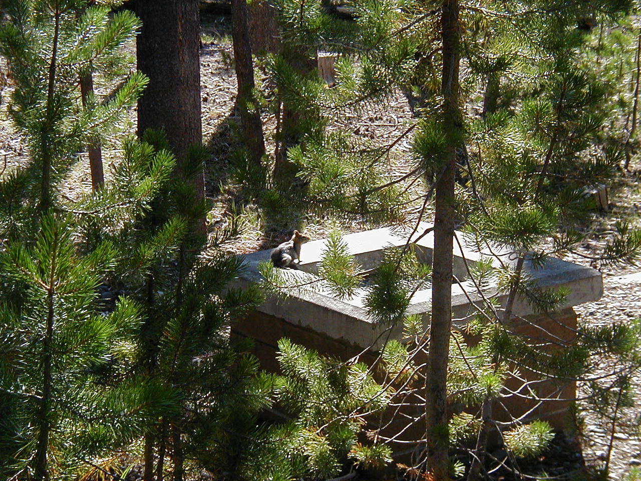There was no water anywhere on the loop, but fortunately for me, a couple parked at one of the lookouts had some to spare. There were in a car, but are avid cyclists who took the water along on their drive - just in case some other cyclist might need it. Good for them, and very lucky for me to come across them. I chatted with them for a short while - in between gulps of cool water - boy that tasted good and refreshing! They told me that they were camped at the campground that I was heading for, and I managed to find a site where I'm camped directly across from them (Barry & Melanie) - I'll go chat later. As it happens, it was a coincidence that I picked this spot - I picked it for the location of the(only) bear bin, which just happens to be on Barry and Melanie's site!