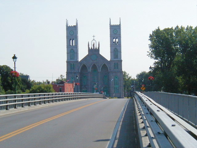 A different day today; wind-wise the opposite of yesterday. This morning for 65km I had to ride into the same headwind that I left on the road yesterday. But when I turned onto Highway 185 at Riviere du Loup, the wind was then to my advantage. Just as well too, because no more flat coastal road, the hills started right in the town, and what hills too! Some of the city streets reminded me of Quebec City. I checked out "Le Petit Temis" bike trail, which runs from Riviere du Loup to Edmunston in new Brunswick, but it was very dusty and Basil didn't like all the bumps, so we opted for the smoother highway! The highway's probably hillier than the rail trail, but the grades on the highway are pretty easy though, just low grade long hills. Also, I think that from here the road is mostly downhill tomorrow into New Brunswick - but I've been wrong before! We'll see! Regardless, it was much nicer to finish the day with a tailwind rather than a headwind.