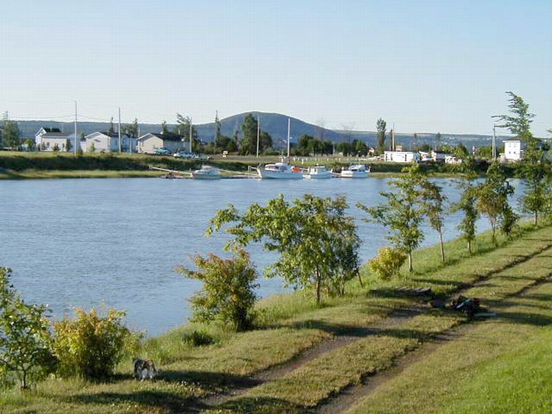 Anyhow, after my quick workout, the rain was spotty, but a nice tailwind developed up as I pedalled east along Highway 132 and it felt great to be speeding along. I reached my second breaky stop at Montmagny a lot sooner than I had anticipated. What was really nice was that by the time that I inhaled my food/fuel, and picked up some bananas at the grocery store, pardon me, Le Marché, the sky was breaking up and the sun was trying to peek out. I rode for a few more Klicks and that bloody wind did a 180° on me and stayed there for the rest of the day! We were not amused! Really strong wind too, coming straight off the St. Lawrence River.