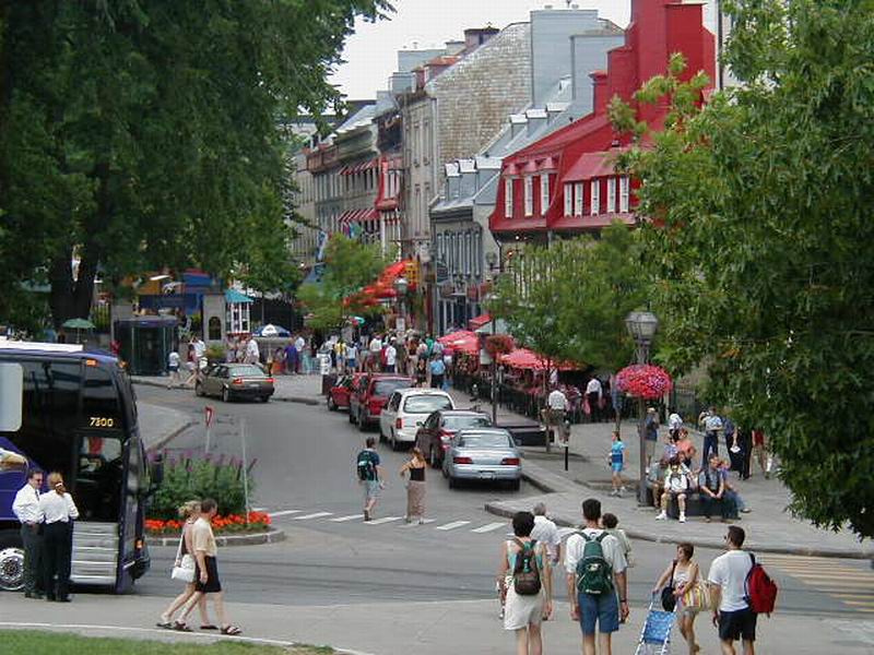 Much more than I wanted to cycle today, but chances for lodgings or camping were not readily available. I ended up at the hostel here in Trois Riviere, so at least I found somewhere to lay my weary bones. I had a quick shower and ambled downtown; of course all the restaurant/bars have outside seating on the main streets, as per the cafes in France and much of Europe, and they're all packed (Oh! It's Saturday!). I've managed to squeeze into one and ordered a mound of food and a beer while I type this journal report. They found me an English menu; I guess they don't think much of my French. I did manage through the day though, to receive everything that I asked for, but everyone guessed that I was English, I wonder why?