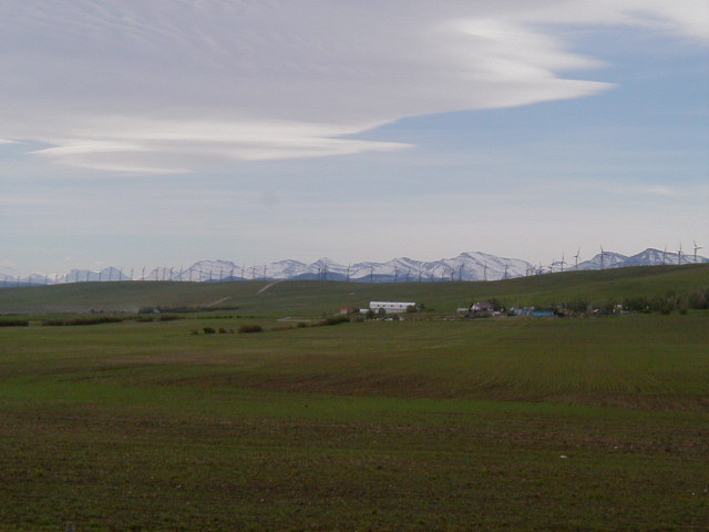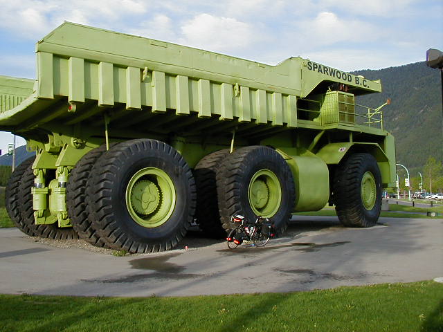 Amongst other things today, I did see the largest truck in the world as I was leaving Sparwood, what a monster, the tires are about 12ft high! Also I passed by the Frank Slide, where a huge section of the mountain slid down to valley in 1903. The rock and debris are scattered far and wide on both sides of the highway. Lots of windmills at Lundbreck, all spinning like crazy today. Interesting stuff!