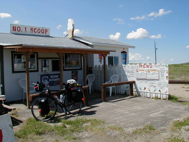 Today's prime find, at Tompkins, SK - The best ice cream stop yet. Just a shack off the highway but a multitude of flavours and run by a couple of elderly ladies. They even had a guest book for me to sign. I had the double scoop waffle cone with Rolo ice cream - Yumeee!