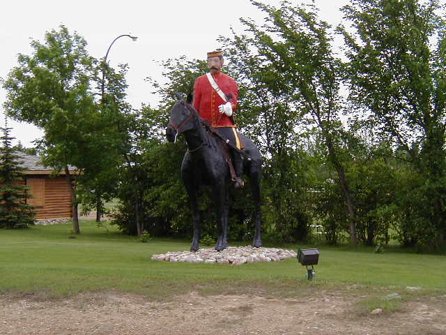 The riding was superb today, with much nicer scenery. The landscape is changing yet again, now there are more stands of trees and the farmhouses are closer together. The area and all the towns are much more vibrant and seem to be going concerns. It was a refreshing change from the impression that I've received in the previous two or three days, that some of towns that I'd passed through ,were declining. Perhaps the oil wells have something to do with it? This area east of Weyburn is peppered with oil wells, so a lot of the benefits must rub off on the towns' economies. Each of the larger [figuratively] towns that I passed through today - Stoughton, Carlyle, Redvers - all have nice golf courses and well kept towns. The houses are very well kept with yards that are nicely manicured. The campsite, that I'm staying at in Redvers, is part of the recreation complex here; the grass is cut short, the showers are free, the place is clean, the water's good - all for $10.00 too!