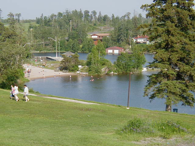 I am in the Lake of the Woods region, and it was sure nice to see a large body of water again (even if it is only fresh water!) after all that riding through the prairies. It's also nice to get the breeze off the water too. The park that I'm camped at, is right on the water, with lake swimming, boat rentals etc., super place and minimal mozzies - so far! I think that a couple of nights here will be good R&R for me. Kenora seems to be a nice enough place and has that resort town atmosphere, somewhat like Penticton, BC.The local Safeway store here has it's own boat dock for the benefit of the lakefront cottagers, who can take their loaded shopping trolleys right down to their boats - now there's convenience!