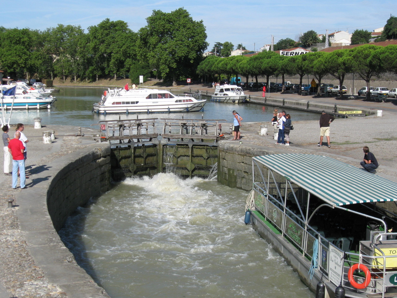 By the way, I had a splendid day off in Carcassonne. After seeing as much of the old city (La Cite) as I wanted, I headed into Carcassonne proper and wandered around there - watched boats getting raised and lowered in the canal locks, watched some trains, ate, drank and generally lazed about for the day. And I met some nice people in the hostel in the evening to share a bottle of wine with and chat about travels past.