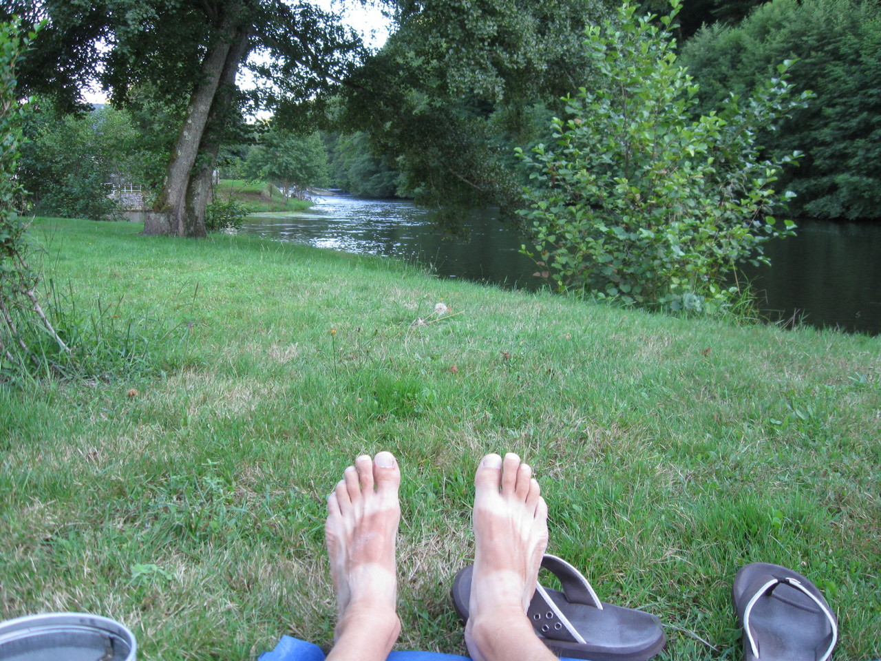The weather was perfect, fairly hot but not overbearing and no wind to speak of at all. I chose to camp today and lucked into a very pretty campsite by a river and a weir. The place is almost deserted as most French people are at the end of their holidays now I feel. Hostel last night was good too - also very quiet, I had a room for three all to myself for a change. Basil liked it too - he had his own bed!
