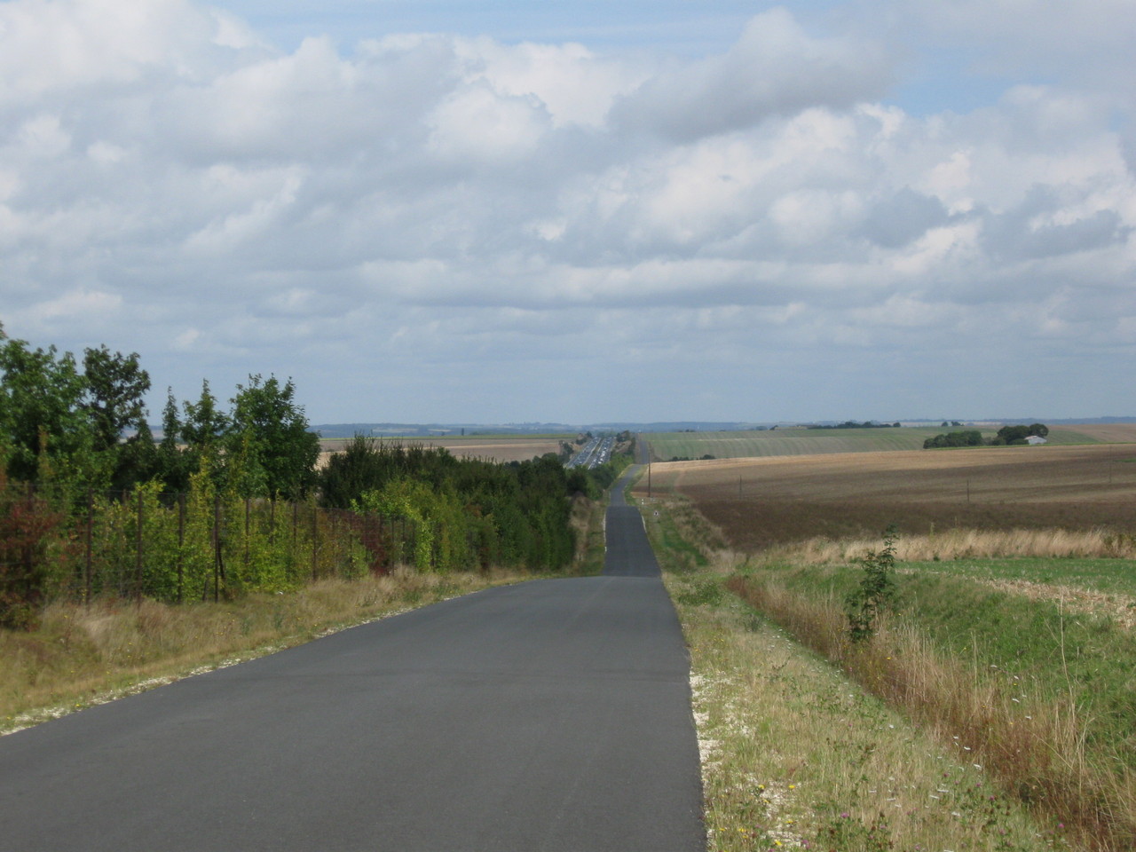 I took the D920 out of town and once again it snaked back and forth across the A20 motorway. It changed designation many times and sometimes it was just a rural road with no number, but it paralleled the highway. It was great, I could hear all the traffic but it was as if I had my own private road - I'll bet that only 20 cars passed me on the straight stretches away from the interchanges and roundabouts - very peaceful riding and the traffic noise was soon forgotten, replaced by thoughts of how fortunate I am when compared to the drivers stuck in their little metal boxes, all following one another - a veritable procession.
