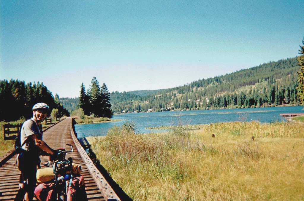 A long low pile trestle greeted us at Osprey Lake and after riding along the lakeshore we turned off to find a backcountry campsite at nearby Link Lake. The campground wasn't the best and was quite grubby with few options for tenting. We opted to continue on the dirt road around Link Lake and found that it rejoined the KVR (the book does not show this, but indicates that the road stops at the campsite). Very soon after rejoining the trail we arrived at Bankier where the general store was closed and up for sale. There was Roxy's B&B/Camping across the trail from the store, so we set up camp there and made full use of their quaint bath house.
