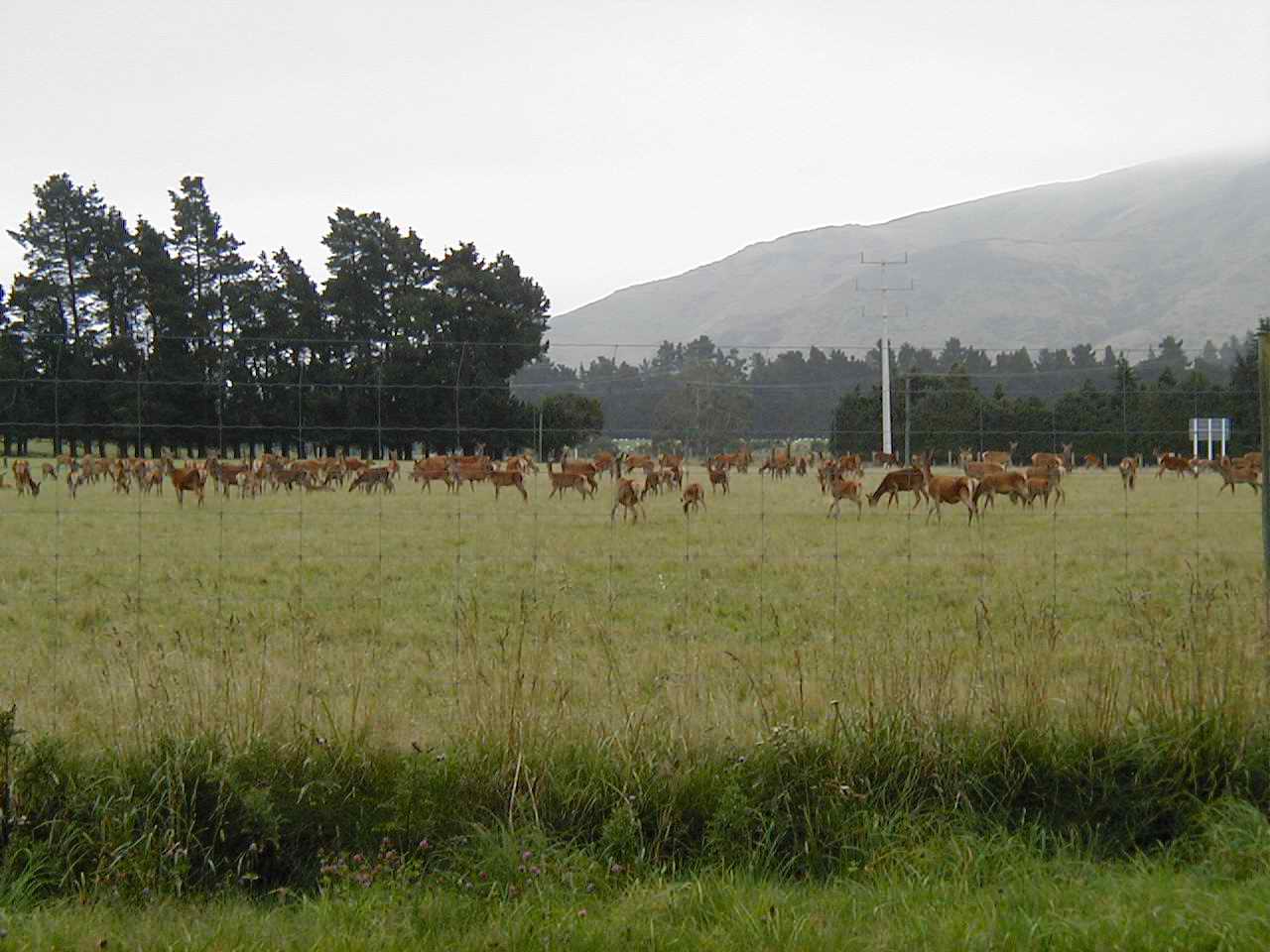 Yesterday, I passed more vineyards and wineries of the Canterbury region; today, in amongst the multitude of sheep farms, I passed quite a few deer farms. Hundreds of deer all penned up. I can't figure out if they're bred for the meat or for hunting.