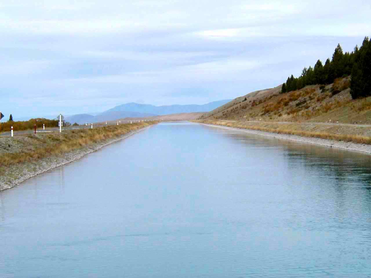 Lake Tekapo and adjoining Lake Pukaki, are dammed to provide a good portion of the South Island's electricity through hydro generation. There is a canal between the lakes, and it must have been an expensive project to complete. But the kicker is that there is a paved road beside the canal that runs for almost 35km - and it's completely flat except for a 2km downhill to the other lake at the end. Guess which road I took? I didn't hesitate to leave SH8 for the serenity of the canal road. I think that besides being a scenic ride, I only saw about six cars along that stretch - and no buses. Buses are more frequent than big trucks now, as they ply the road to Queenstown. Shortly after reaching Lake Pukaki I had to leave the canal road and rejoin SH8 to ride on to Twizel and Omarama.