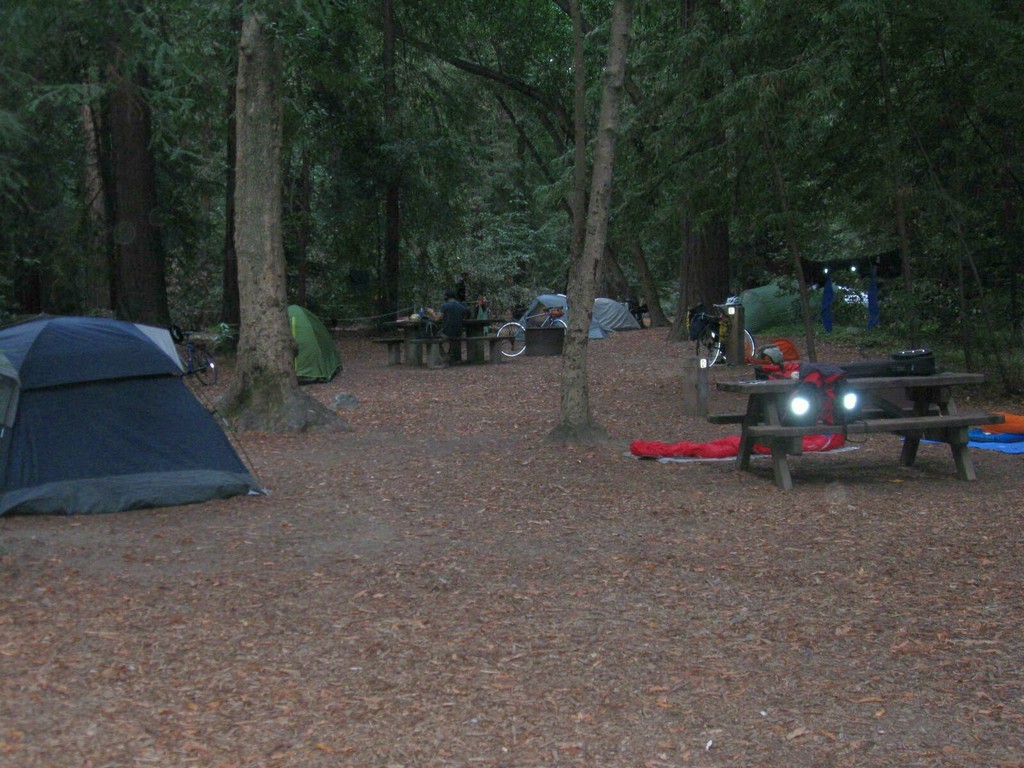Lots of other cyclists showed up at the camp last night even after dark. The place was full when I looked out this morning. Mostly new faces, but a few from previous meets north of here.