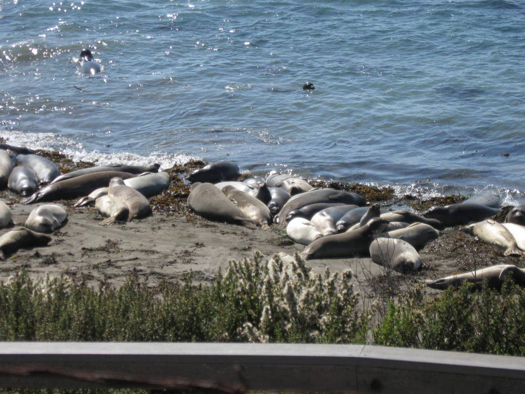 The miles flew by now and before I knew it I was almost in San Simeon, Hearst Castle territory. Before that though, I passed Point Piedras Blancas – the rocky shores here are favoured by the Elephant Seals of the Pacific. I thought at first that I was seeing driftwood on the beaches, but it was actually Elephant Seals that migrate here at this time of the year. Literally thousands of them all over any beach space in this area.