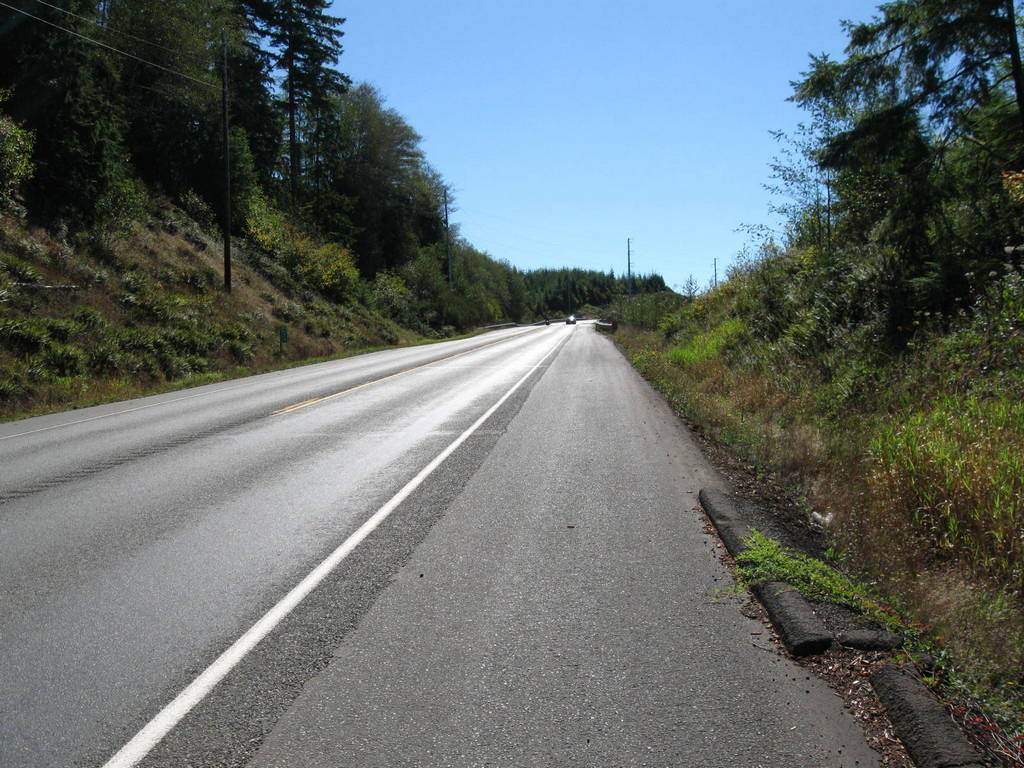 Shelton is at sea level, so a morning greeting was the 1.5km stiff climb out of town in a light, cool mist on the Old Olympic Highway 3, which would get me back onto 101 south in a few kilometres. That section of 101 is more like a freeway as it is one of the main routes to the state capital of Olympia. At the top of the hill, the mist cleared already and the sun was out.