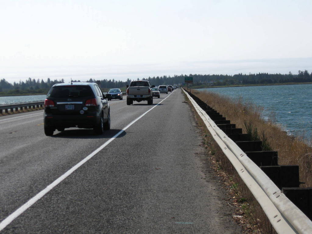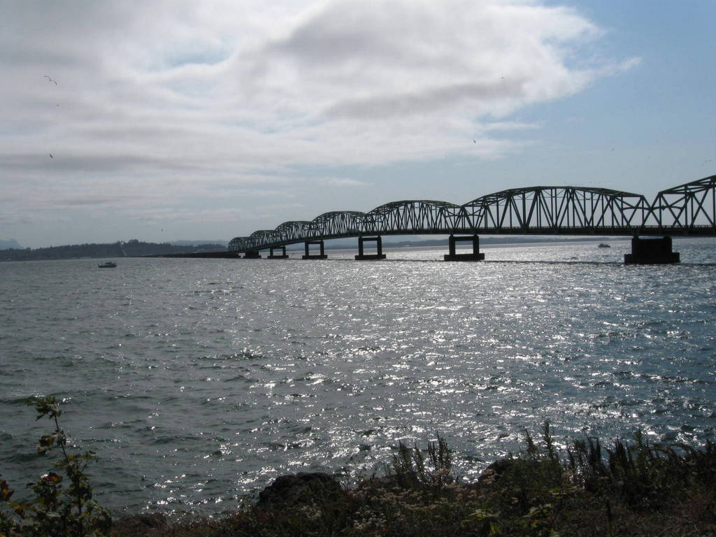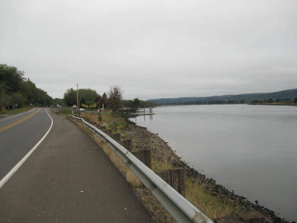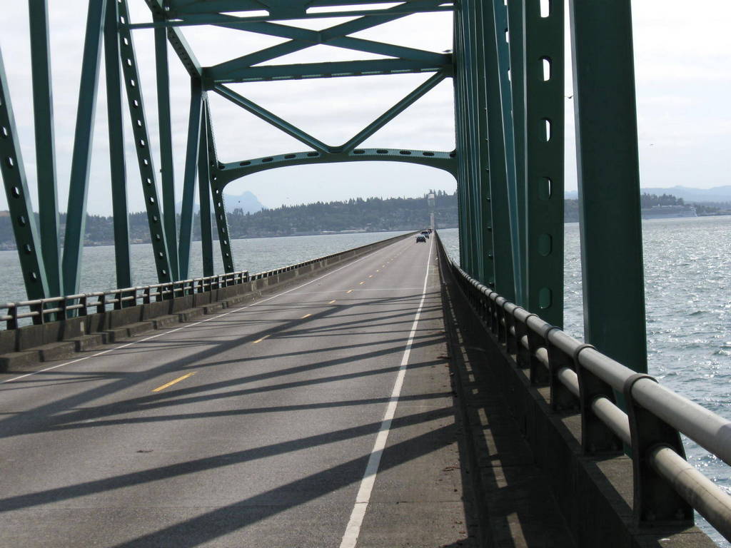 Not much to say about the road as riding at first alongside the Willapa river delta was scenic but not on a good shoulder and very little for services. We hoped to find something at Nemah, but that was just a dot on the map with a fish hatchery (closed) and a school. The wind decreased a little as we headed inland to the southeast turn onto SR4. Next stop ending up being lunch at a gas station in Naselle at the turn onto route 401 – 401 would take us to the 5km long Astoria-Megler bridge, between Washington and Oregon States across the Columbia River.